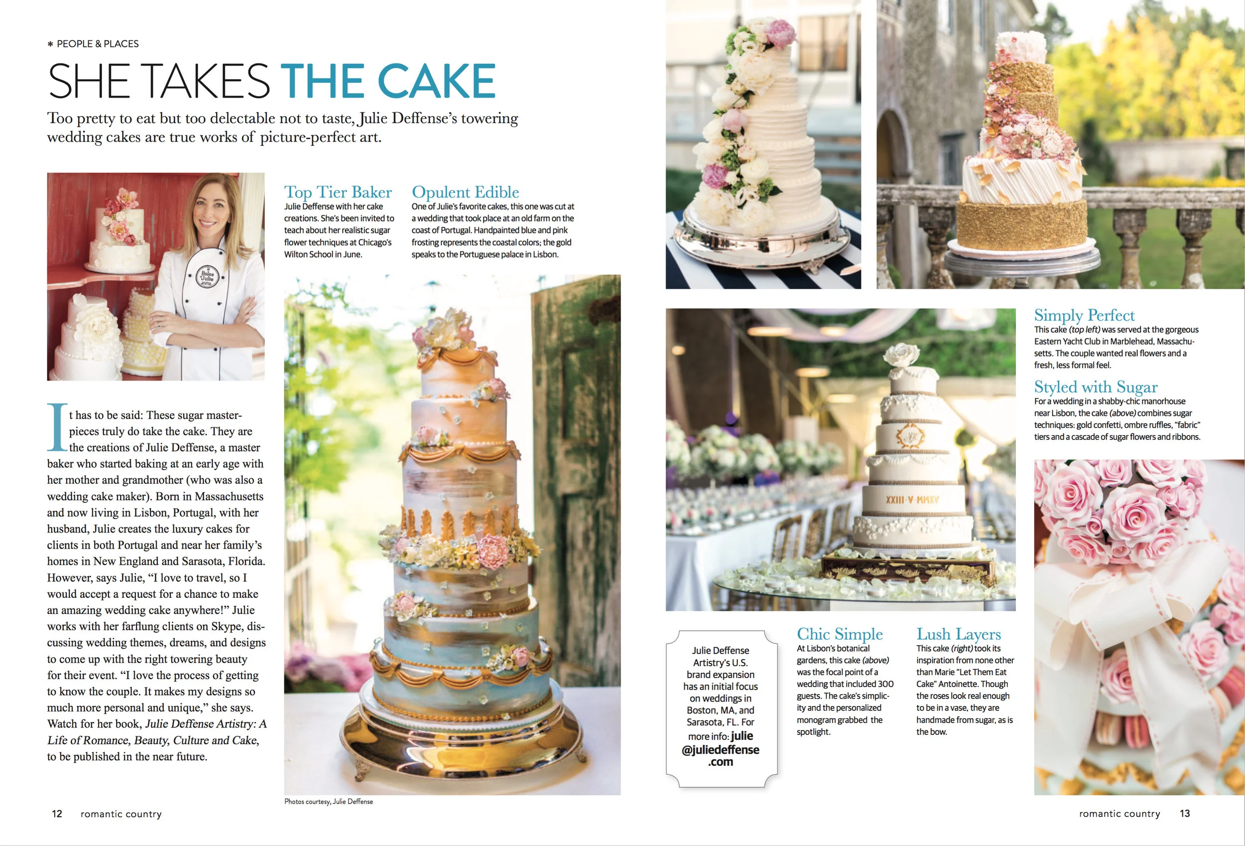 Julie Deffense brings inspired talent for design of lavish cakes. What sets these creations apart is unique context -- the romance, beauty, and culture of life based from Portugal -- a top travel, culinary and wedding destination today.